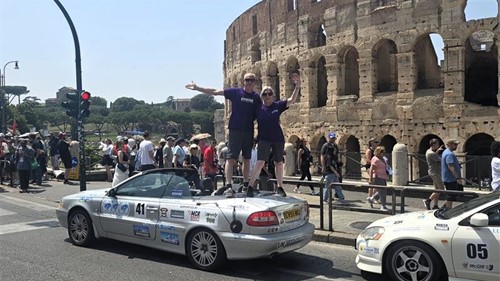 The incredible drive saw them wind through the narrow streets of Assisi, letting loose on the German Autobahn, climbing the mountains of the Austrian Alps and Dolomites. There was even time for a stop in Venice before reaching the iconic Colosseum in Rome.